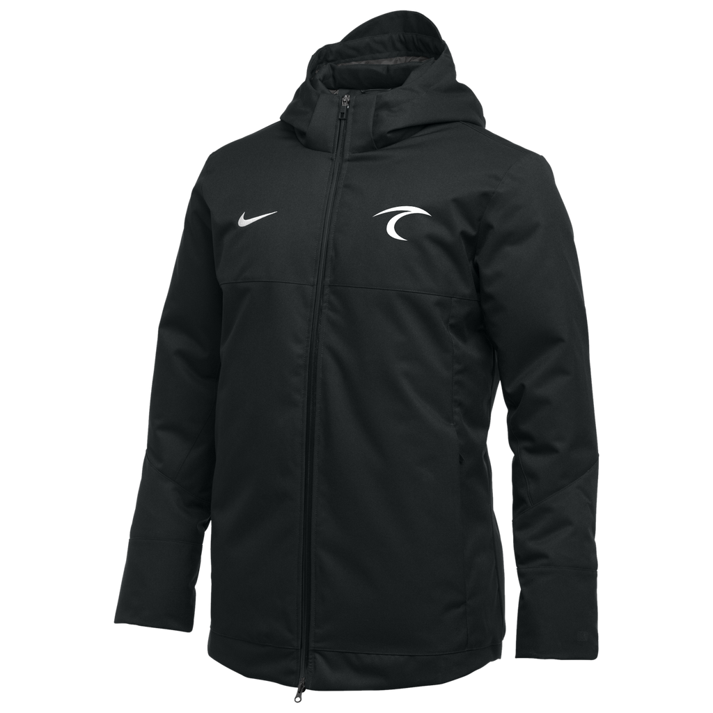 Stay warm and dry in the Nike Down-Fill Parka on frigid practice and game days. A Storm-FIT shell and seam-sealed front zipper keeps the elements at bay when you're on the sidelines. Hidden side zipper pockets help you keep your hands warm or give you a spot to stash your stuff. Customize the colors for a look that will make your team proud.