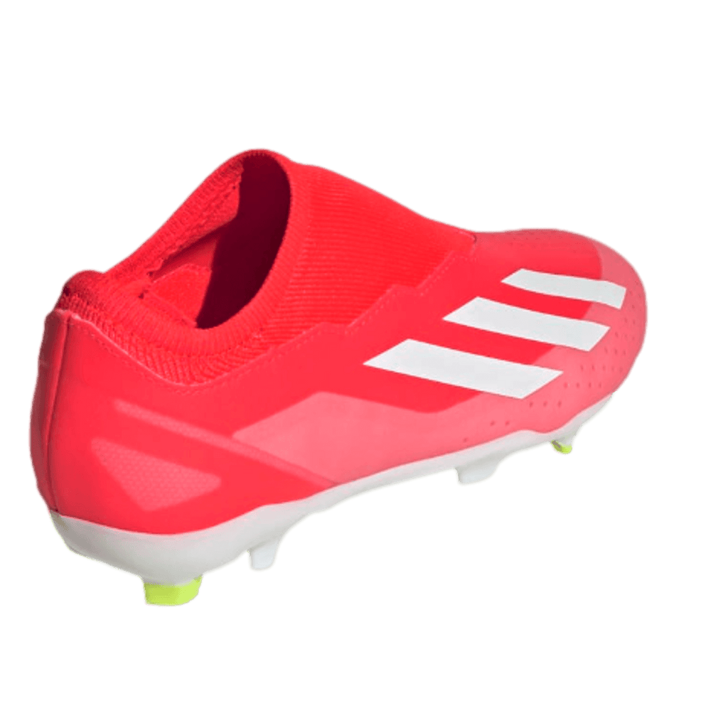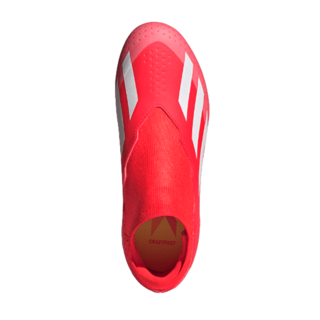 Nada supera la adrenalina de la velocidad pura. Cambia el juego en un instante y deja atrás a los defensores con las ligeras adidas X Crazyfast. Estas botas de fútbol sin cordones para jóvenes te mantienen estable a toda velocidad sobre césped seco y cuentan con una suela especial para terreno firme. Con capas adicionales solo donde se requiere refuerzo, su parte superior de tela revestida viene con un cuello de punto plano para una sujeción sólida. Este producto cuenta con al menos un 20 % de materiales reciclados. Al reutilizar materiales que ya se han creado, ayudamos a reducir los desechos y nuestra dependencia de recursos finitos y reducimos la huella de los productos que fabricamos.