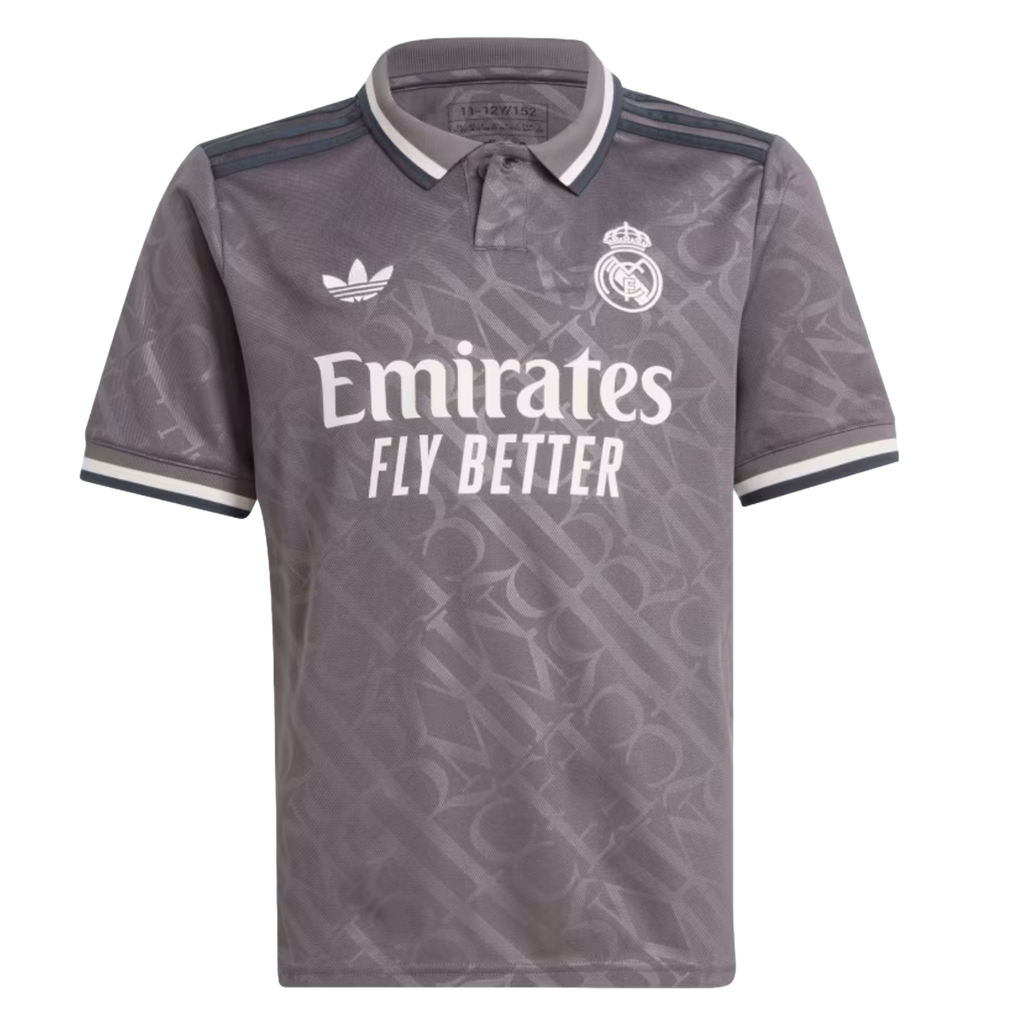 La elegancia es su identidad. Los monogramas "RMCF" en relieve que se repiten en esta tercera camiseta juvenil del Real Madrid toman prestado su estilo distintivo de las letras que se usan en los carteles tradicionales de las calles de Madrid. El icónico trébol, que se destaca del diseño elegante, regresa a una camiseta de juego de adidas después de una larga pausa. Detrás de todo esto, AEROREADY mantiene a los fanáticos del fútbol secos y cómodos mientras gritan su apoyo. Este producto está hecho con materiales 100 % reciclados. Al reutilizar materiales que ya se han creado, ayudamos a reducir los desechos y nuestra dependencia de recursos finitos y reducimos la huella de los productos que fabricamos.