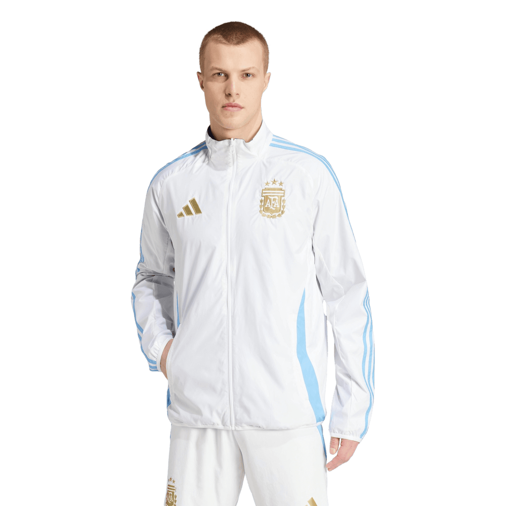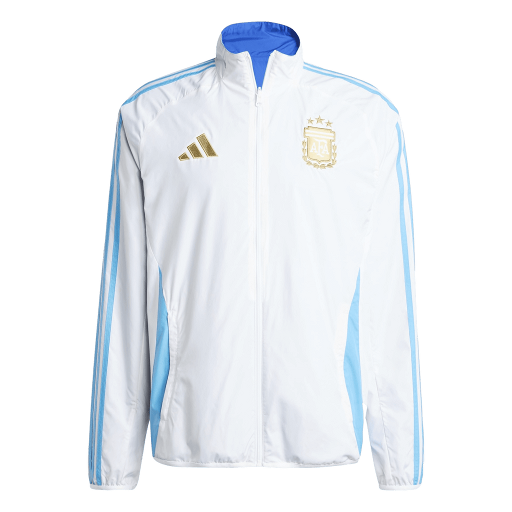 Ya sea que demuestres tu lealtad frente al juego o salgas a la ciudad, esta chaqueta reversible de adidas te permite lucir con orgullo los colores de tu selección nacional. Con un lado que hace un guiño al uniforme local de Argentina y el otro que refleja el uniforme visitante, te dará opciones cuando quieras expresar tu fanatismo futbolístico. La tela antidesgarro duradera garantiza que te sientas cómodo sin importar el estilo que elijas. Este producto está hecho con materiales 100 % reciclados. Al reutilizar materiales que ya se han creado, ayudamos a reducir los desechos y nuestra dependencia de recursos finitos y reducimos la huella de los productos que fabricamos.