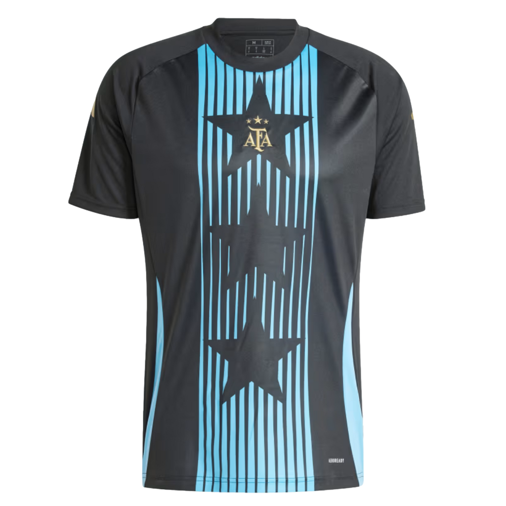 La camiseta liviana con la que calientan los jugadores de Argentina, confeccionada con materiales reciclados.