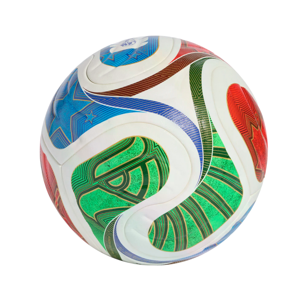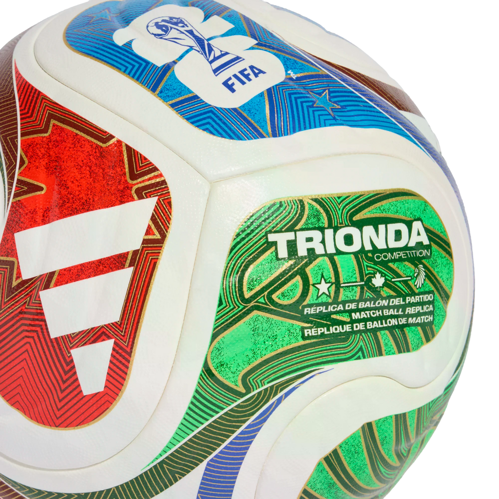 A spectacular sight first seen at sporting venues across the Americas, the iconic "la ola" wave inspires the flowing, four-panel design of this adidas Trionda Competition ball. Perfect for matches, it has a seamless surface with a fine texture and debossing for enhanced precision and in-flight stability. A nod to FIFA World Cup 26™'s three host countries, vibrant graphics mimic the look of the tournament's official match ball.