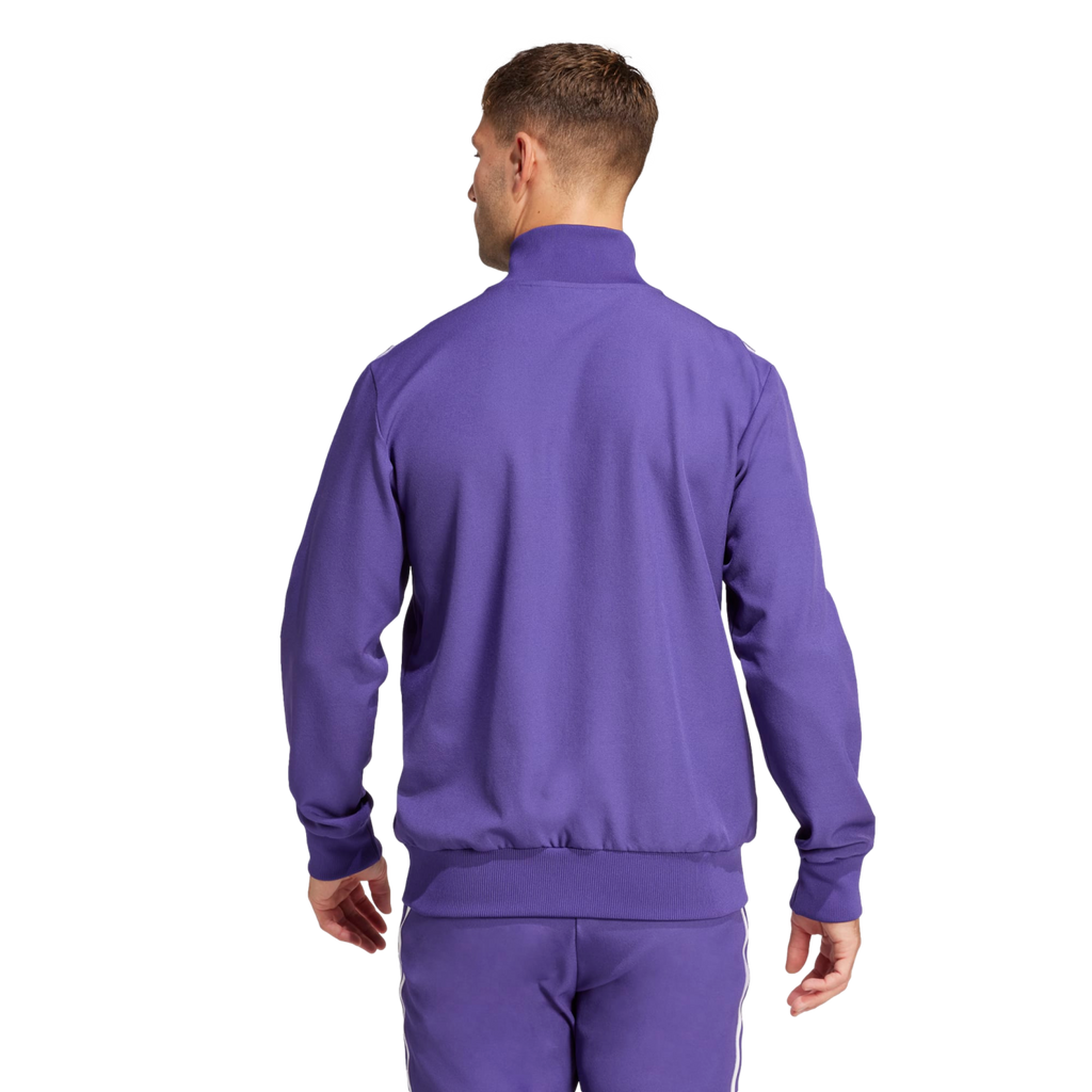 Una camiseta de chándal de corte ajustado para los aficionados del Real Madrid, confeccionada en parte con materiales reciclados.