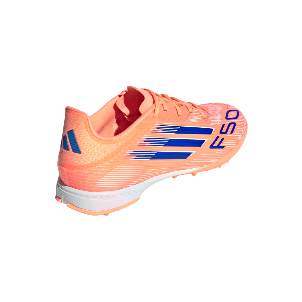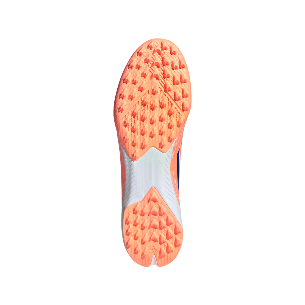 Find your fast to truly express yourself on the field. Feel the rush in adidas F50 boots engineered for speed. Standing out with an eye-catching Sprintgrid print, the Fiberskin upper on these League football boots employs an adaptive Tunnel Tongue for rock-solid lockdown. An EVA midsole and lug rubber outsole team up for comfortable sprinting on artificial turf surfaces.