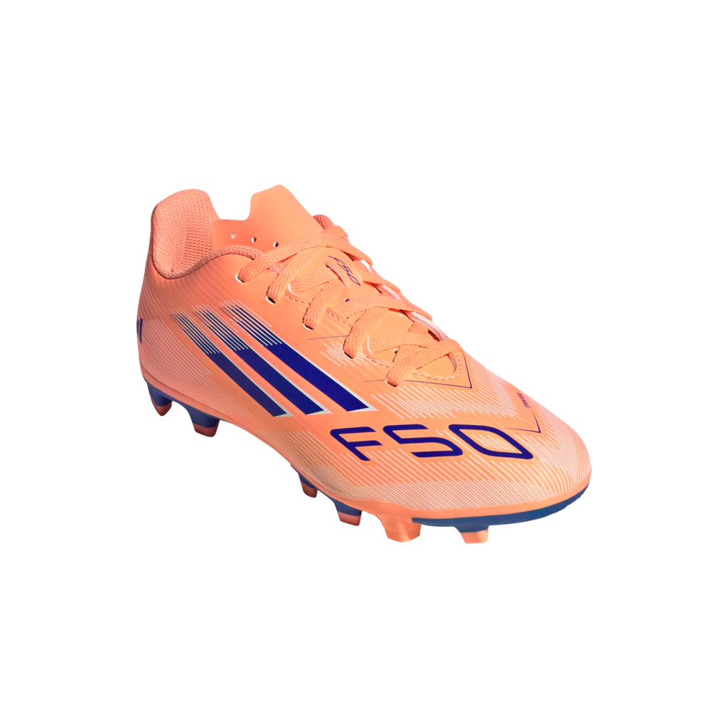 Find your fast to truly express yourself on the field. Feel the rush in adidas F50 cleats engineered for speed. These juniors' Club soccer cleats keep you comfortable on the move with a lightweight synthetic upper and perforated tongue. Turn them over and you'll find an outsole that supports speedy play on firm ground and artificial grass pitches.