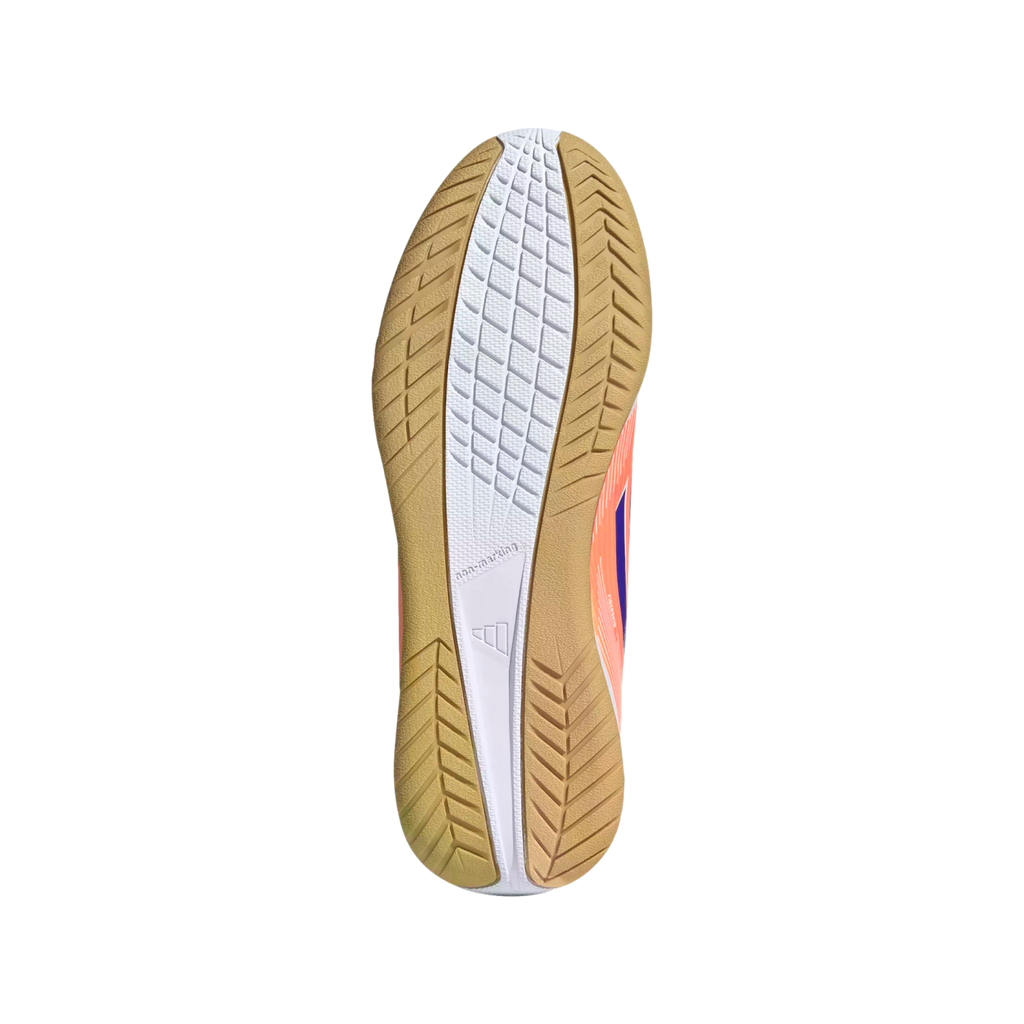 Find your fast to truly express yourself on the court. Feel the rush in adidas F50 boots engineered for speed. These juniors' Club football boots keep you comfortable on the move with a lightweight synthetic upper and perforated tongue. Turn them over and you'll find a grippy rubber outsole that supports speedy play on flat indoor surfaces.