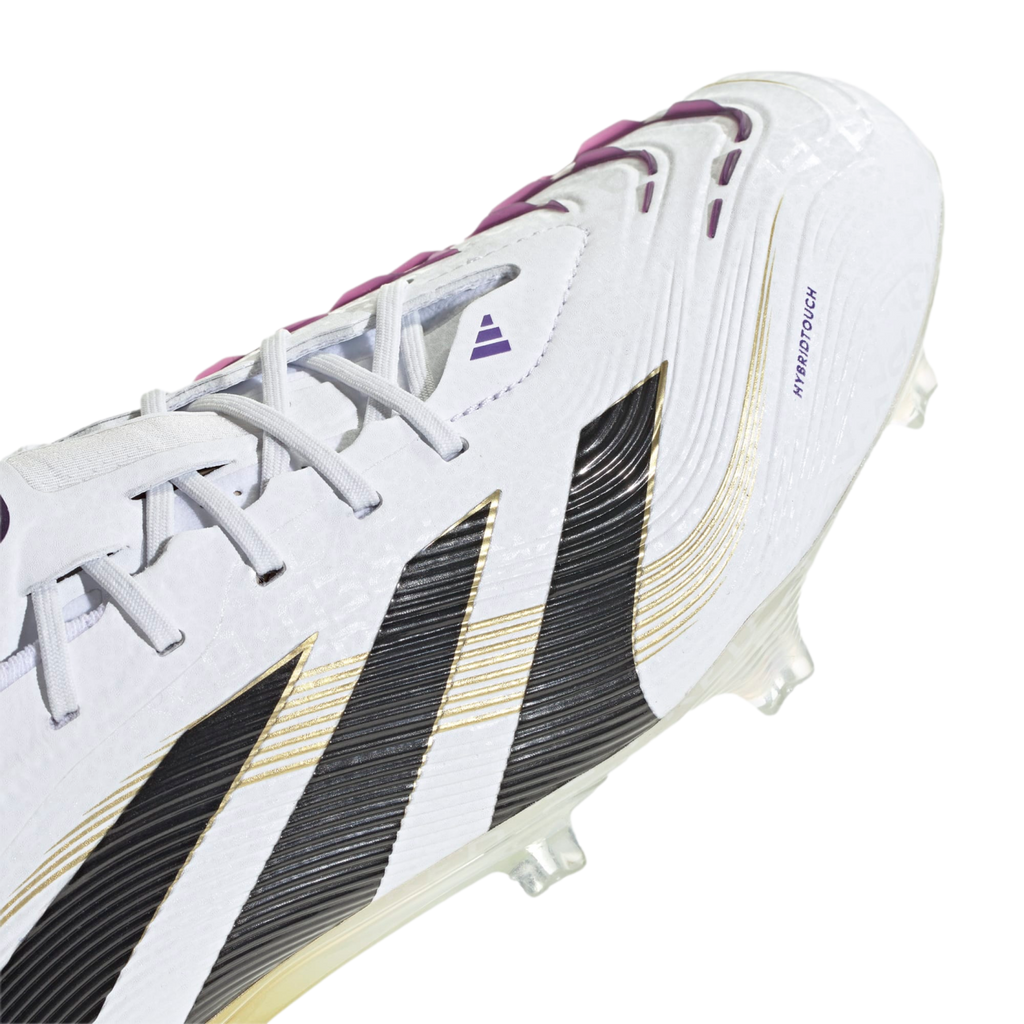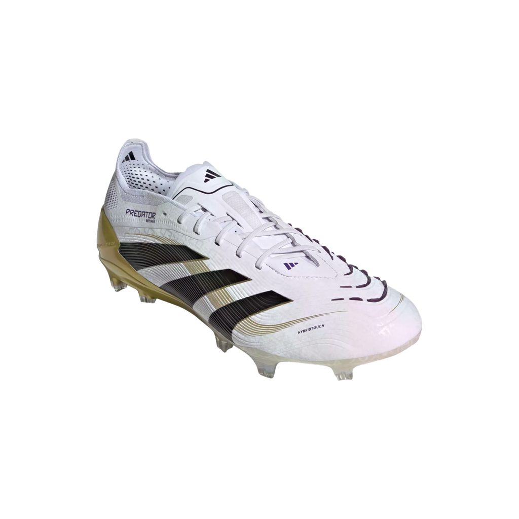 Discover the difference between aiming to score and knowing you will with adidas Predator cleats that are crafted for goals. These Elite cleats have a HybridTouch upper with strategically placed rubber Strikeskin fins that provide perfect contact with the soccer. The Controlframe 2.0 firm ground outsole and adidas PRIMEKNIT collar are designed to give you a stable stance when the goal's at your mercy.