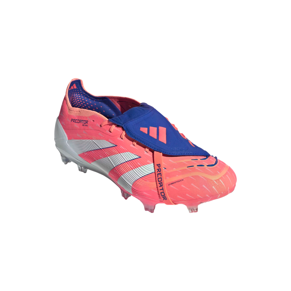 Discover the difference between aiming to score and knowing you will with adidas Predator cleats that are crafted for goals. These Elite cleats have a HybridTouch upper with a fold-over tongue and rubber Strikeskin fins that help provide perfect contact with the soccer. The Controlframe 2.0 firm ground outsole and adidas PRIMEKNIT collar are designed to give you a stable stance when the goal's at your mercy.