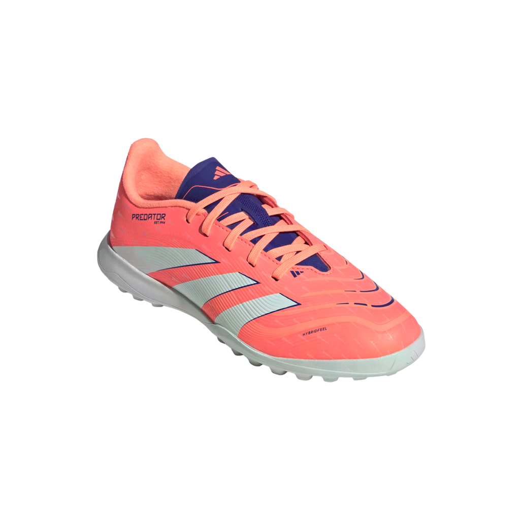 Discover the difference between aiming to score and knowing you will with adidas Predator cleats that are crafted for goals. These juniors' League cleats have a Hybridfeel upper that incorporates an all-over 3D texture and grippy Strikescale fins to help you manipulate the soccer during strikes. A lug rubber outsole keeps you stable on artificial turf pitches.