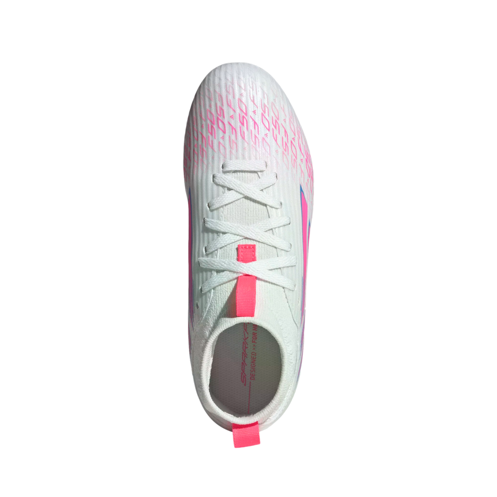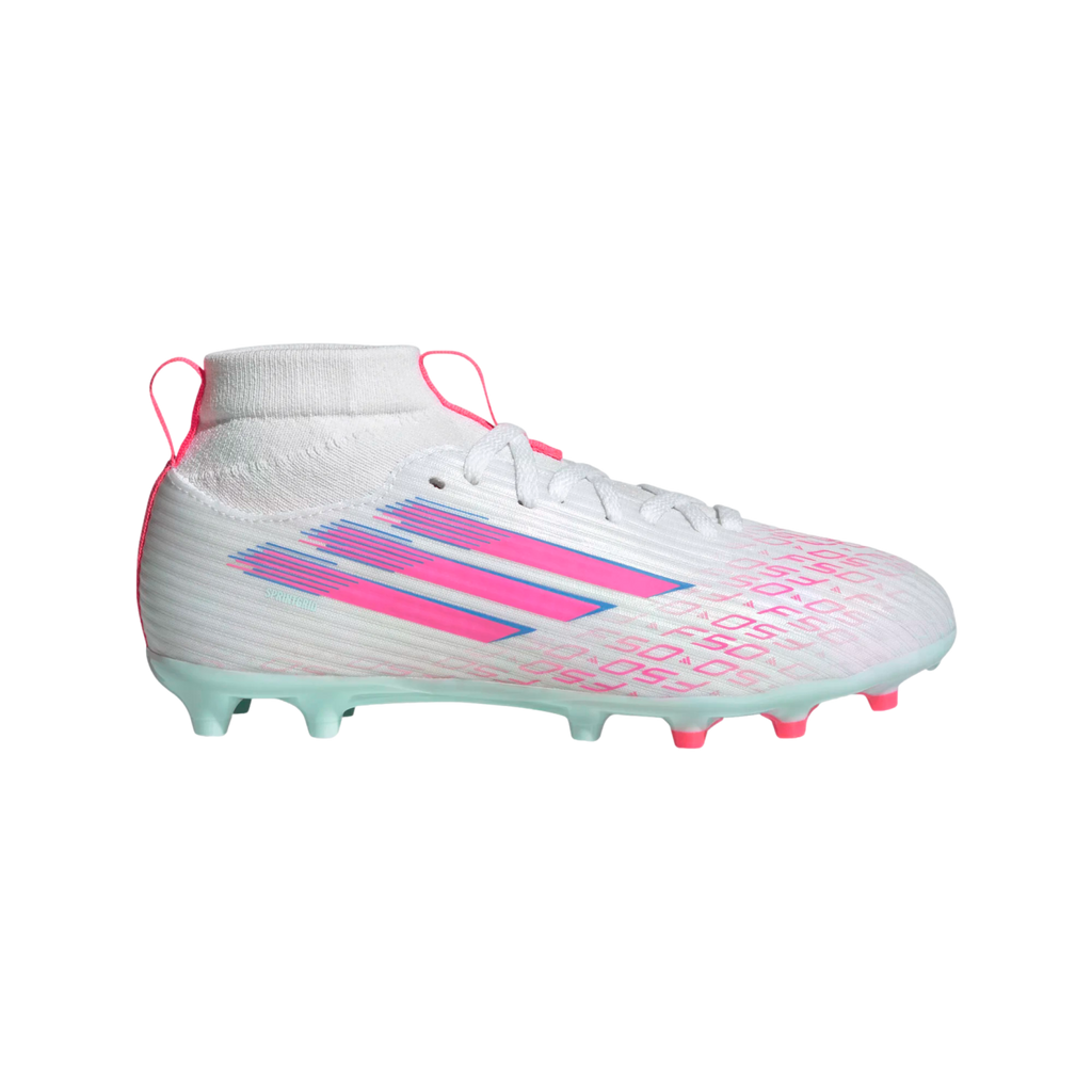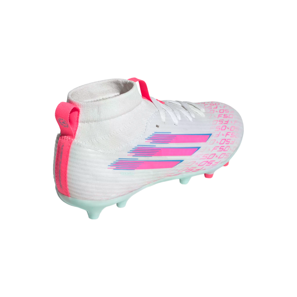 Designed for her. Light up the pitch in supportive F50 Sparkfusion cleats created specifically for female athletes. These juniors' adidas League cleats have a soft Fiberskin upper for comfort, a specially shaped last for the perfect fit, and a Sprintplate Fusion outsole that supports women's biomechanics. The result? Footwear that will help you fulfill your soccer potential on firm ground and artificial grass.