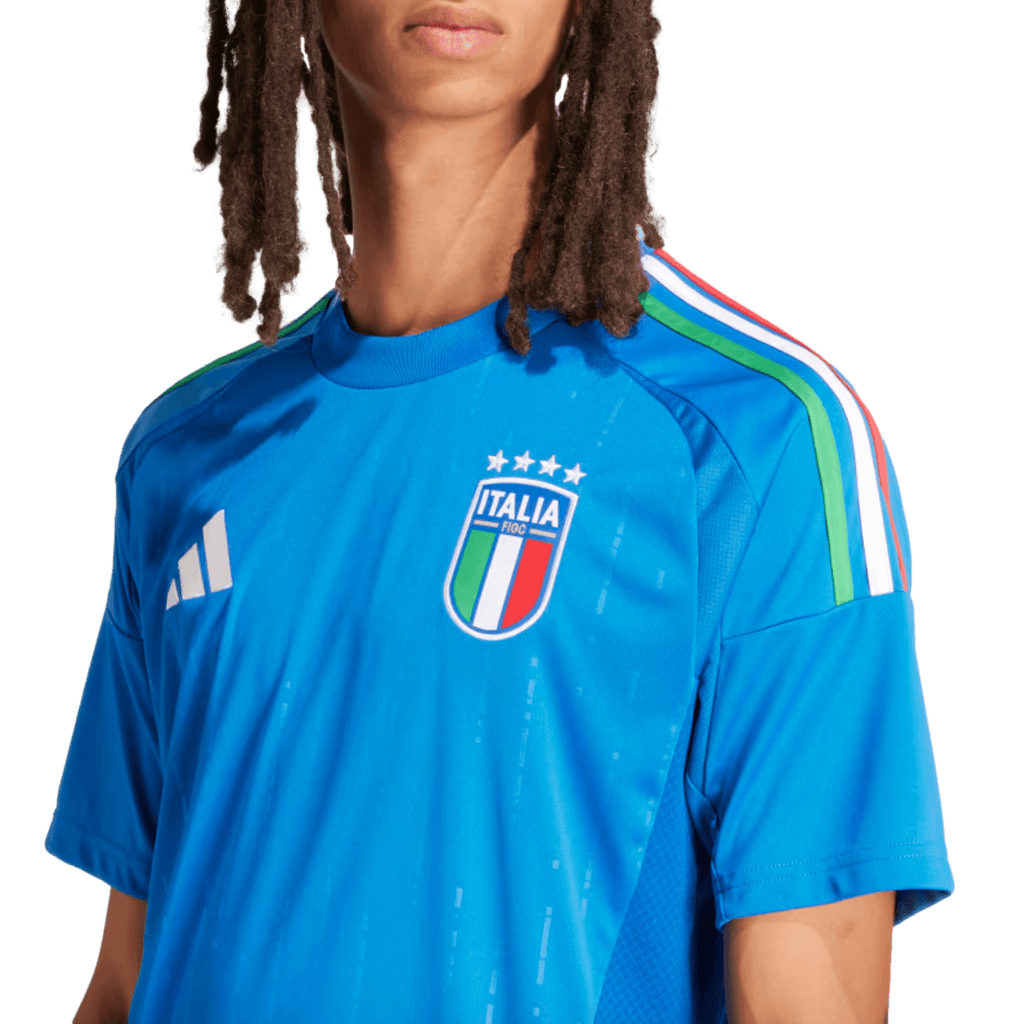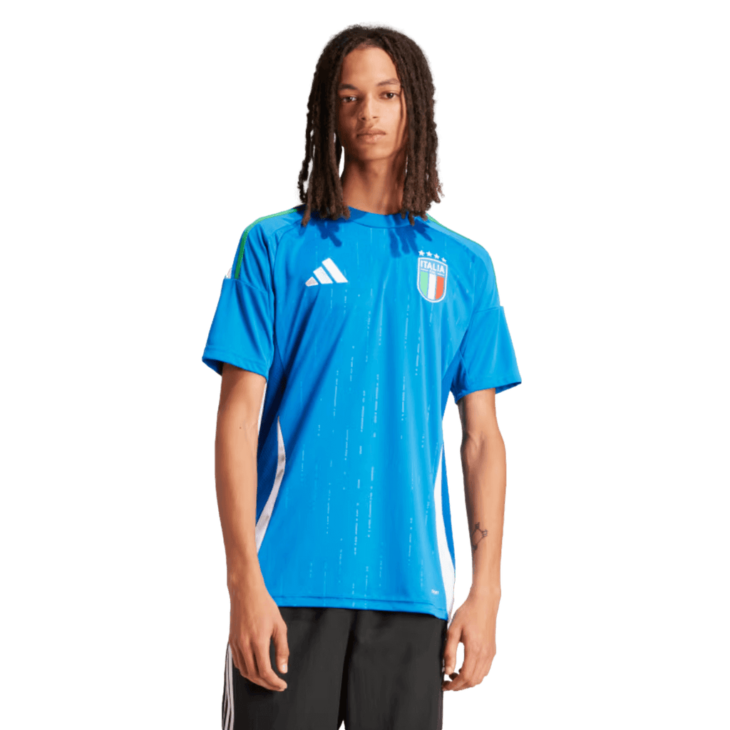 They're famous for playing in blue, but their national flag flies green, white and red. So this adidas Italy home jersey displays those famous il Tricolore colors on its 3-Stripes for peak national pride. Created for fans, this shirt includes soft fabric and moisture-managing AEROREADY. A woven badge on the chest adds one final hit of soccer passion. This product is made with 100% recycled materials. By reusing materials that have already been created, we help to reduce waste and our reliance on finite resources and reduce the footprint of the products we make.
