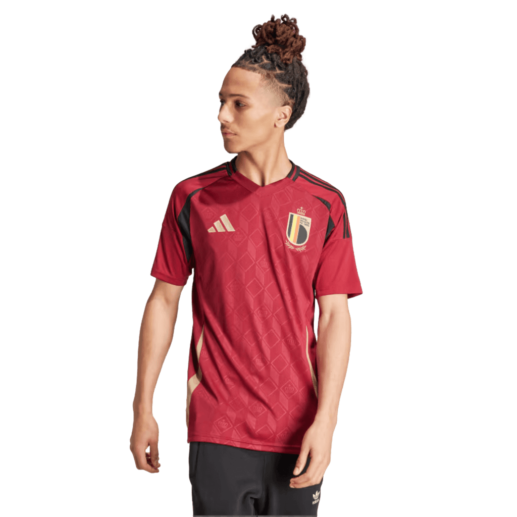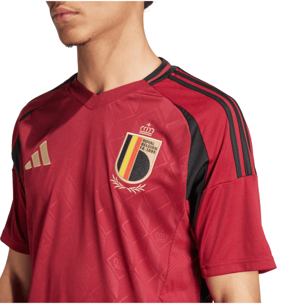 Designed to stand out. The eye-catching geometric pattern on this adidas home jersey takes inspiration from Belgium's contemporary fashion and modern architecture. Behind the graphics, AEROREADY keeps fans dry while they support their country from the stands. A team badge on the chest and "1895" sign-off on the back neck show your soccer fandom will span the seasons. This product is made with 100% recycled materials. By reusing materials that have already been created, we help to reduce waste and our reliance on finite resources and reduce the footprint of the products we make.