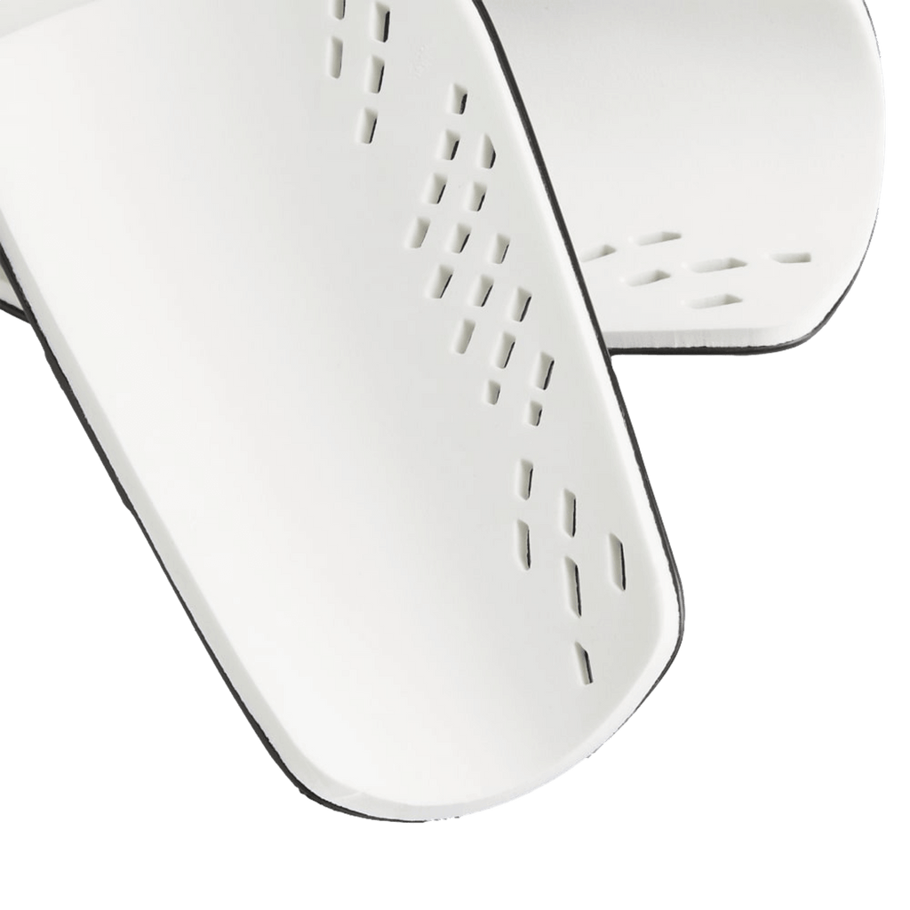 Defend yourself without sacrificing mobility. These adidas Tiro Club shin guards are built for players who prefer the convenience of slipping pads straight into their socks. Lightweight and flexible, their hard shields have EVA backing for impact absorption and perforations for added ventilation.