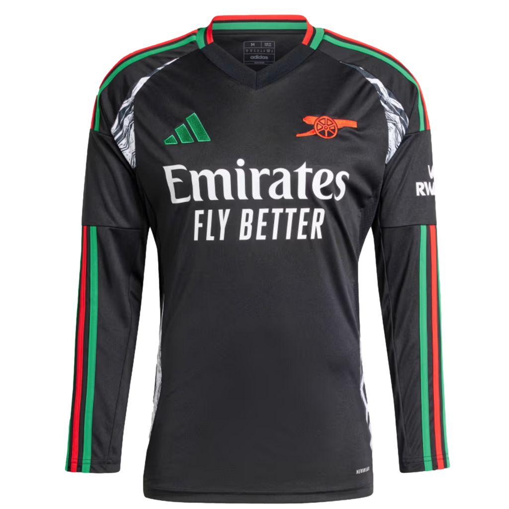 An expression of pride in Arsenal's diverse fanbase. Showing off Labrum London's signature West African influences, this adidas jersey is part of a collaboration with the British fashion brand. Intricate graphics and details in the colors of the Pan-African flag combine for an eye-catching look. A premium team badge, long sleeves and moisture-managing AEROREADY make it perfect for devoted soccer supporters.This product is made with 100% recycled materials. By reusing materials that have already been created, we help to reduce waste and our reliance on finite resources and reduce the footprint of the products we make.