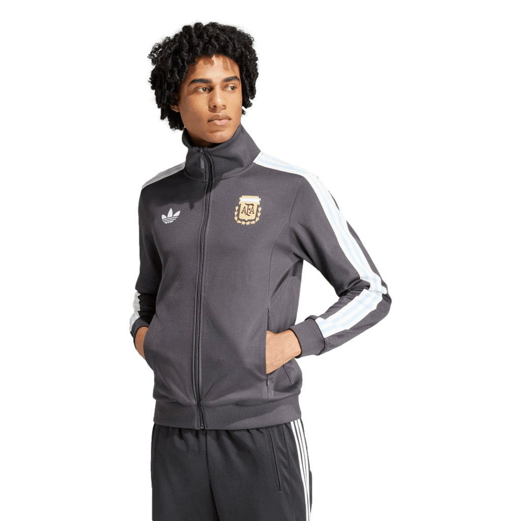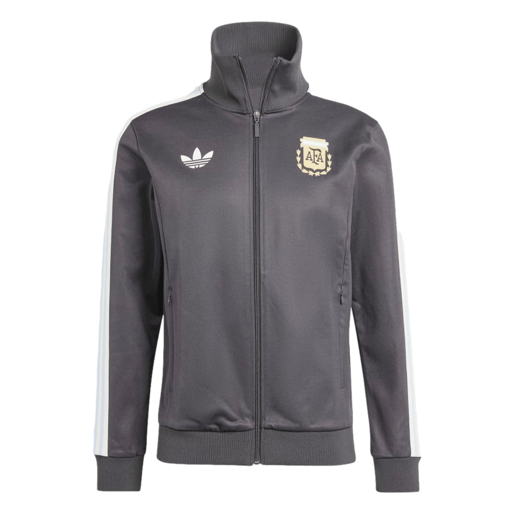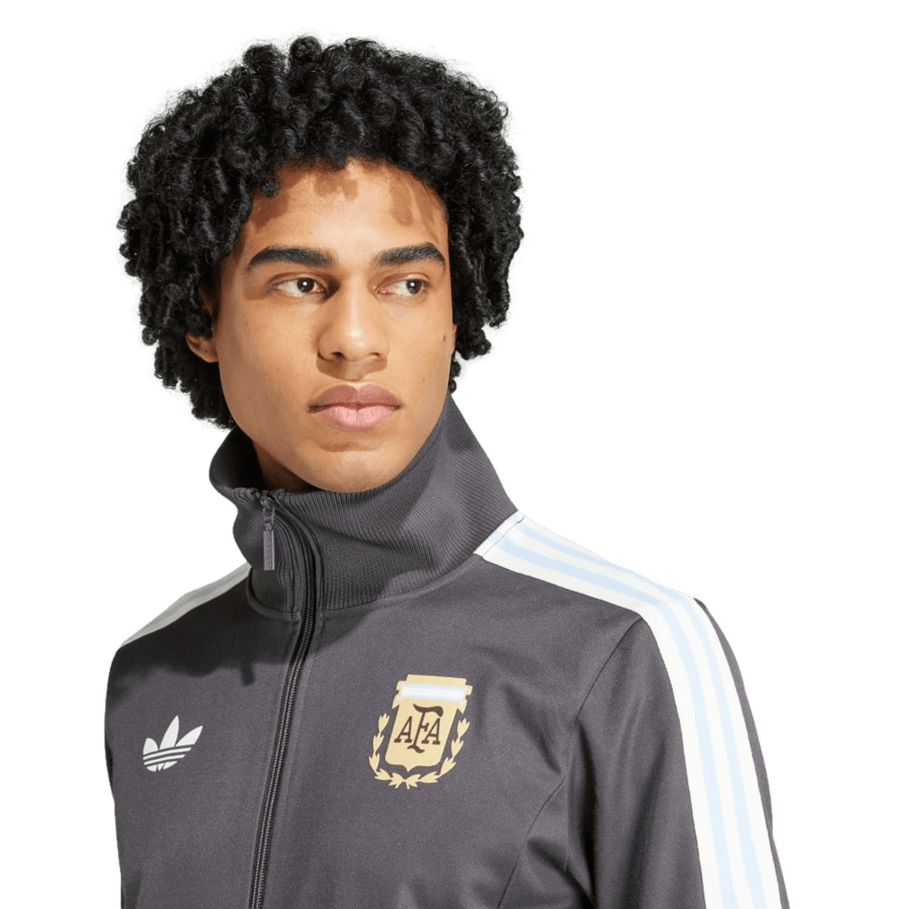 The Argentina Beckenbauer Track top is a modern staple with heritage-inspired details. Embrace an instantly recognizable look with the iconic adidas 3-Stripes and Trefoil on the solid black backdrop. The suede-printed Argentina badge creates a striking visual contrast so you can show your support for Argentina in a timeless look.