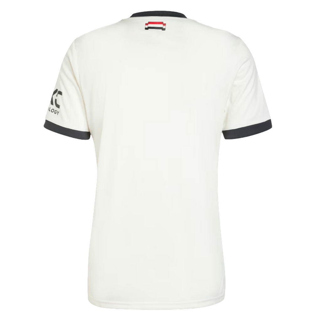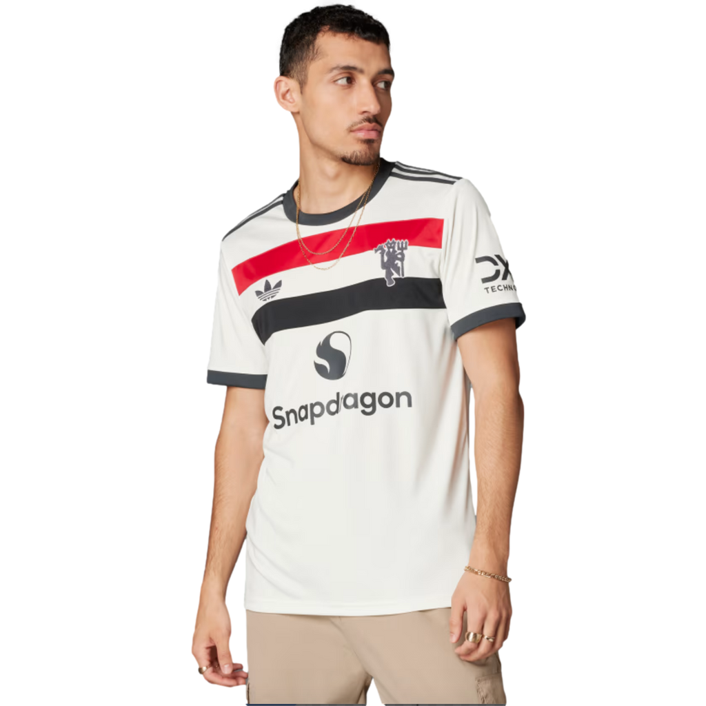 Football pride never falls out of fashion. This Manchester United third jersey salutes the flags that follow the club home and away, while also adding some classic adidas heritage. Shorthand for sporty style, a Trefoil and red devil badge stand out from that tricolour chest bar. Moisture-managing AEROREADY keeps fans comfortable.This product is made with 100% recycled materials. By reusing materials that have already been created, we help to reduce waste and our reliance on finite resources and reduce the footprint of the products we make.