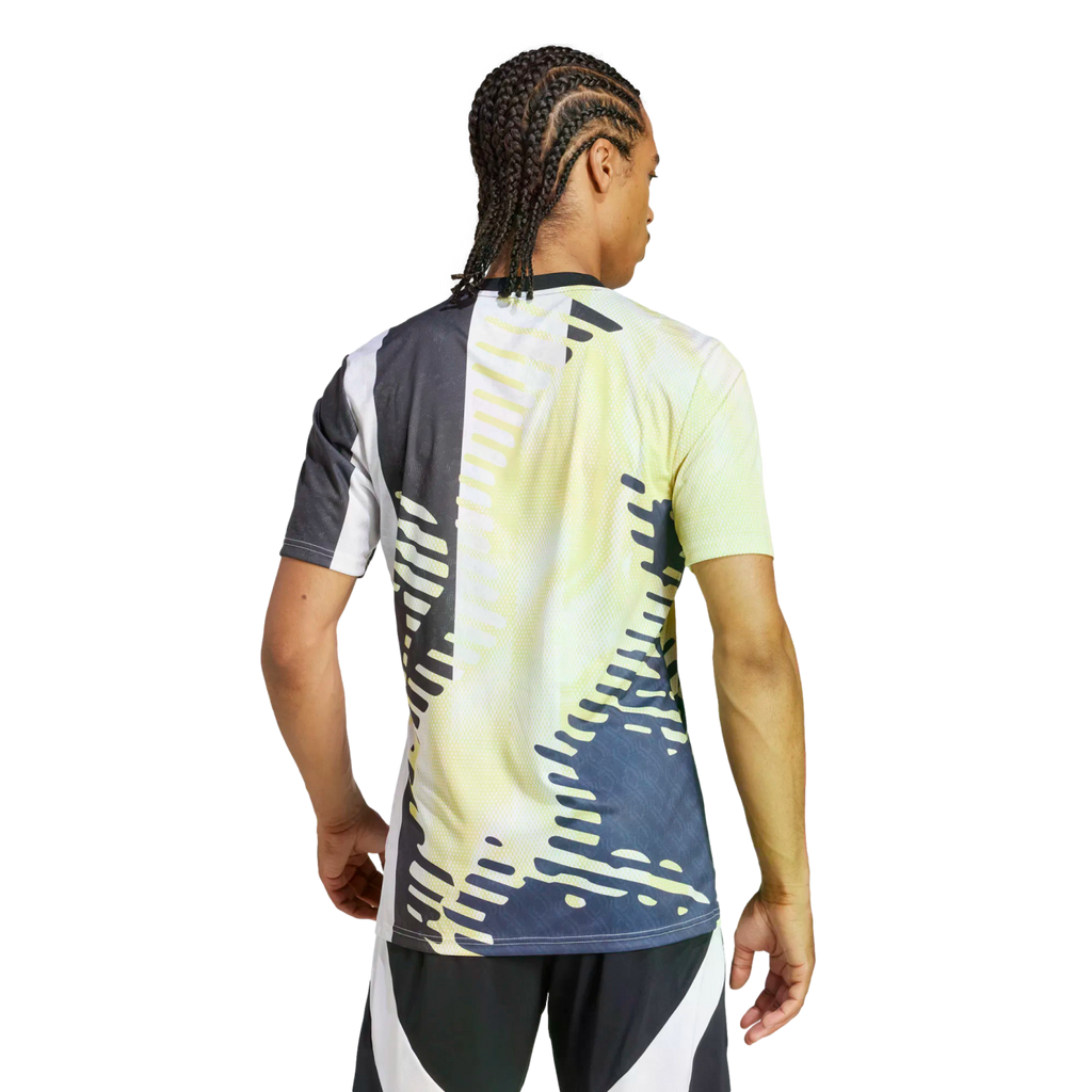 Polish your soccer skills in Juventus style. This adidas pre-match jersey mashes up design elements from all three Juventus 24/25 match kits for a bold look that's bound to turn heads. The shirt players wear before kick-off, it will keep you comfortable with moisture-managing AEROREADY and soft fabric.