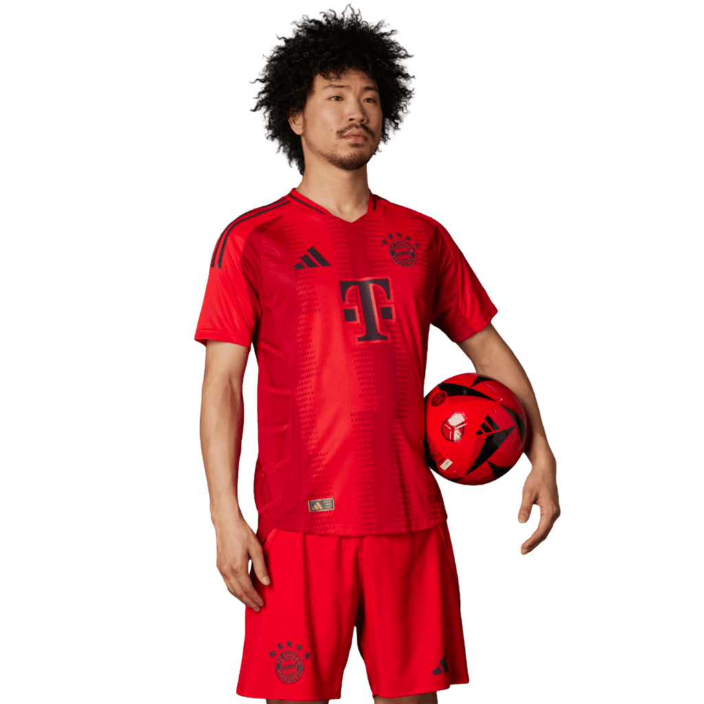A classic striped home shirt, with a twist. Created from three shades of red, the meandering stripes on this FC Bayern jersey are formed from tiny diamonds for added club DNA. Built by adidas for flowing soccer, this authentic kit item features lightweight heat-applied details and ventilated HEAT.RDY.This product is made with 100% recycled materials. By reusing materials that have already been created, we help to reduce waste and our reliance on finite resources and reduce the footprint of the products we make.
