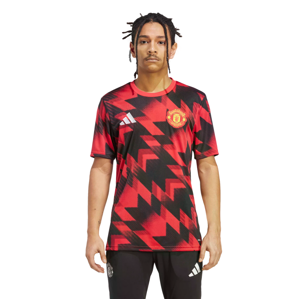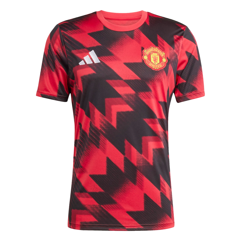 A moisture-managing warm-up jersey clad in a familiar Man Utd design.