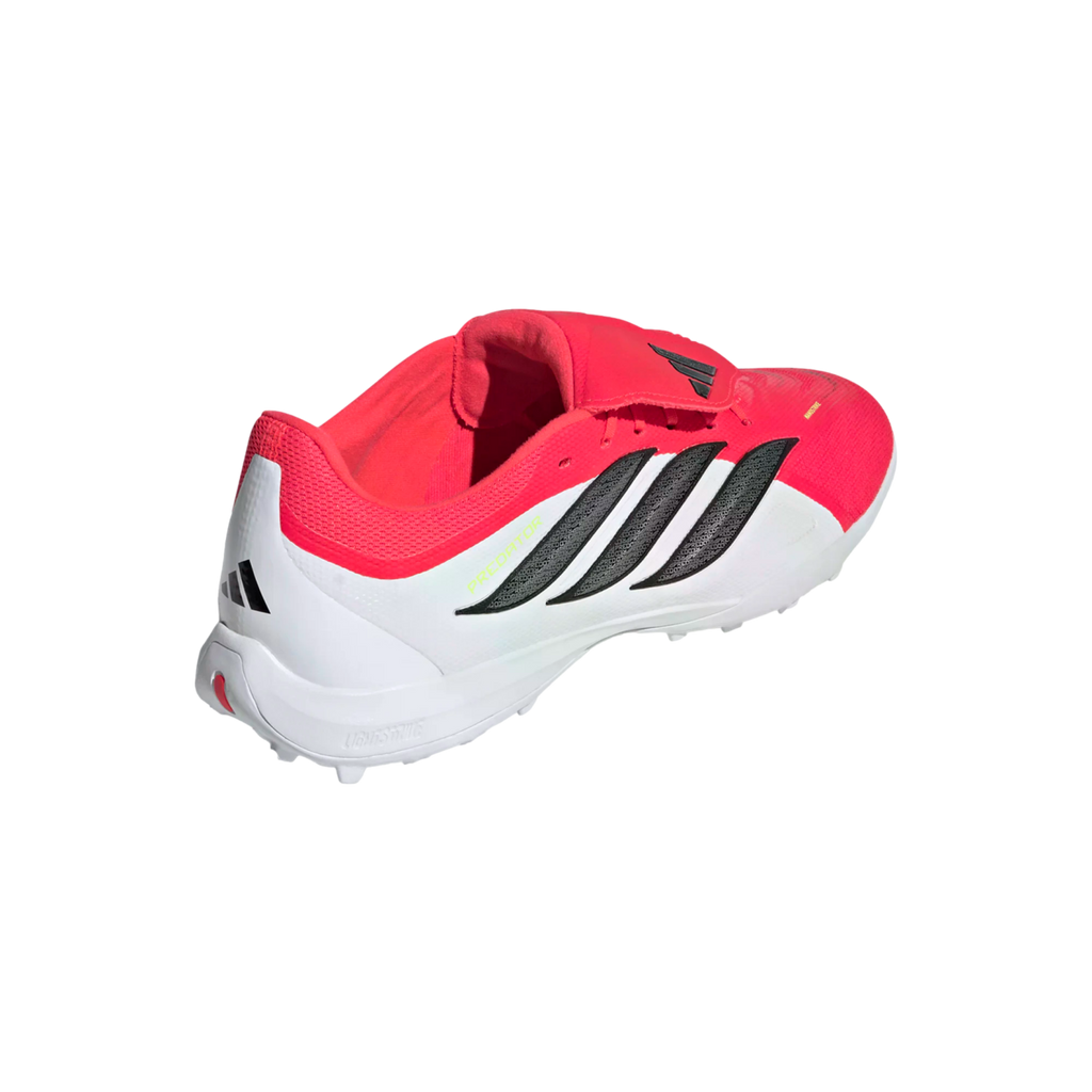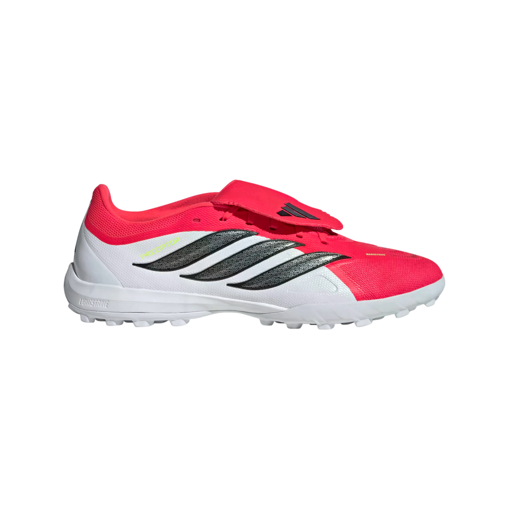 The Predator League Fold-Over Tongue Turf soccer Shoes are designed to help you unlock your potential on the field. With innovative mesh and striking technology, these shoes are crafted for control in front of the goal. Nanostrike technology offers a reimagined synergy between fit and grip, in a mesh upper built for extra softness and lightness. Underfoot, PowerSpine is incorporated in new high-performance tooling and built to steady the midfoot and deliver stronger shots. The iconic fold-over tongue creates a smooth striking surface, supporting your ability to control the ball. Its design supports striking precision, helping you find the edge to make your mark on the game. A regular fit and lace closure provide a secure and comfortable fit, while the rubber outsole is built for turf surfaces, offering the traction you need to strive for excellence. When you want to perform at your best, these shoes are on hand as your ally in power and precision. With adidas, it's more than just footwear. It’s a way of life.