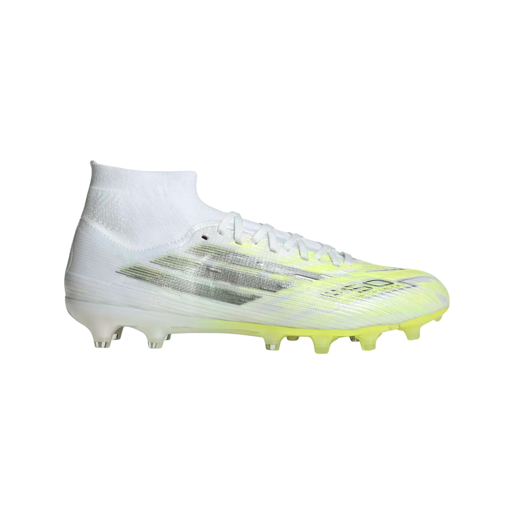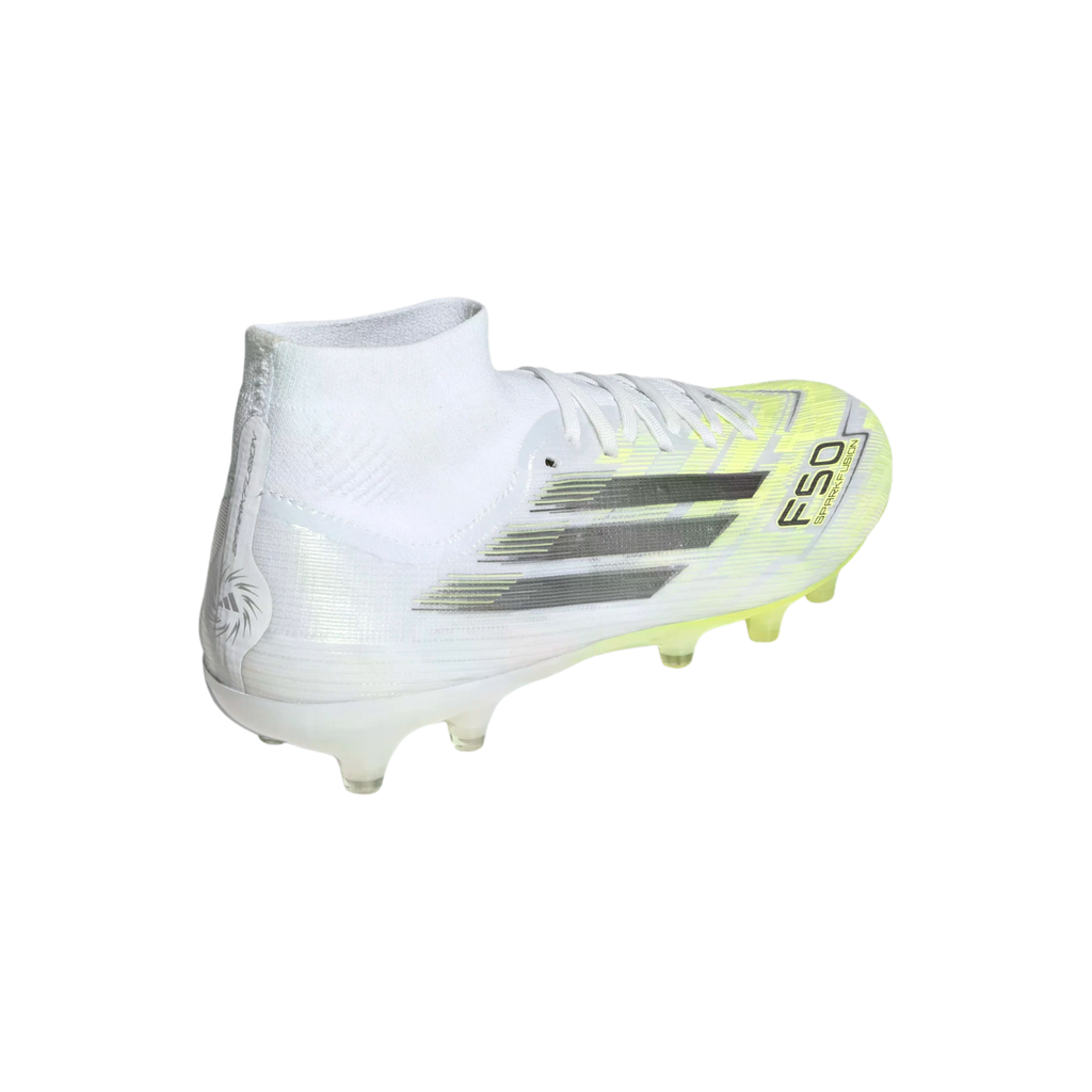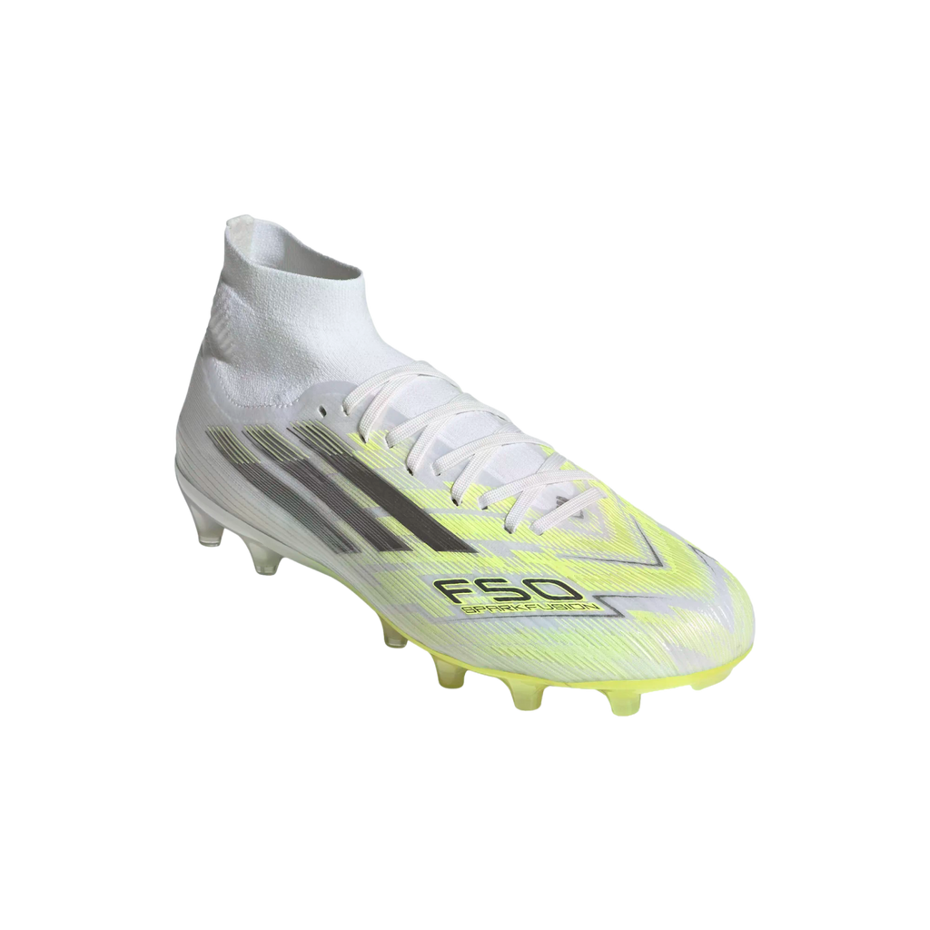 Designed specifically for women, the F50 Sparkfusion Pro Mid Cut Firm Ground / Artificial Ground Soccer cleats are crafted to change the course of your matches. The engineered Primeknit collar offers a mid-cut design that provides a firm, supportive and comfortable fit. The cleats feature a lace closure system, allowing you to adjust the fit for the lockdown your foot needs. Experience stability and comfort with the Women's Comfort F50 Sockliner, which stabilizes movement within the boot and provides optimal arch support. The outsole is meticulously designed for traction on firm ground surfaces like dry natural grass. adidas continues to innovate, combining style, comfort and performance in one dynamic package.