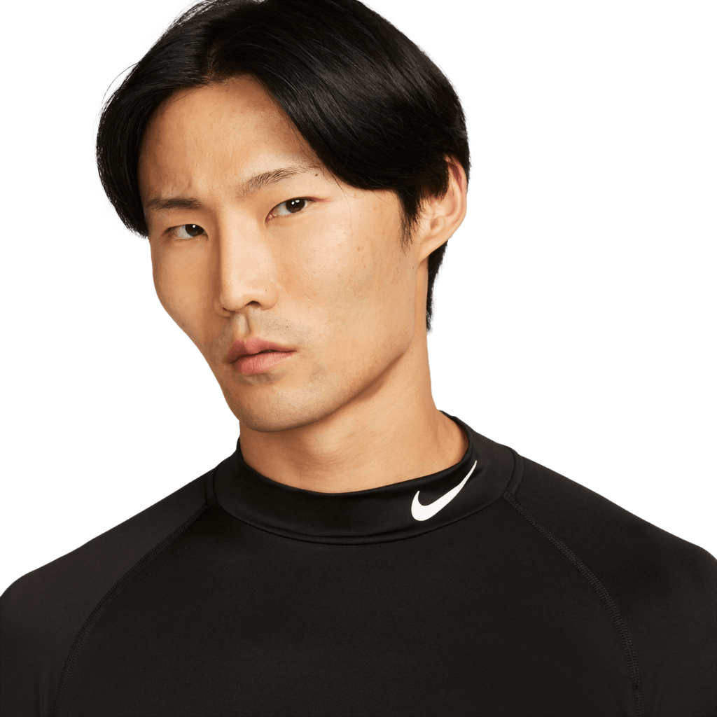 The Nike Pro collection is all about feeling confident doing your best, no matter where you are on your workout journey. This slim-fitting mock-neck top has a smooth and stretchy feel for the sports and activities you love. Nike Dri-FIT technology moves sweat away from your skin for quicker evaporation, helping you stay dry and comfortable. An extended hem allows you to tuck in the shirt more securely or have improved coverage when it's untucked.Made to Move