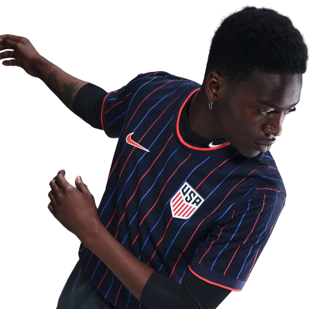 Since 1985, the USWNT has been the guiding light for the future of the game. Celebrate four stars and 40 years of progress with the USMNT 2025 Away kit. The stripe graphic pulsating stardust embodies the radiant heartbeat of the team as they continue to inspire future generations.
