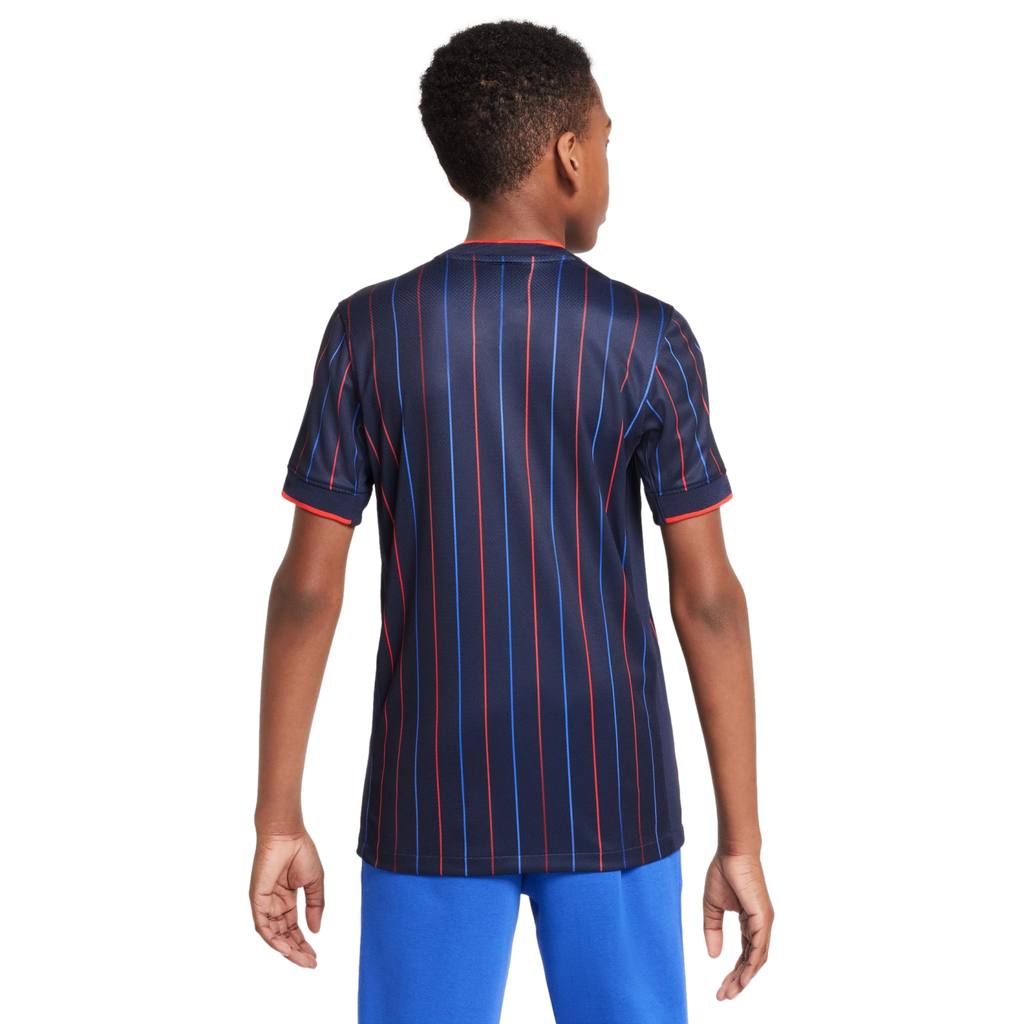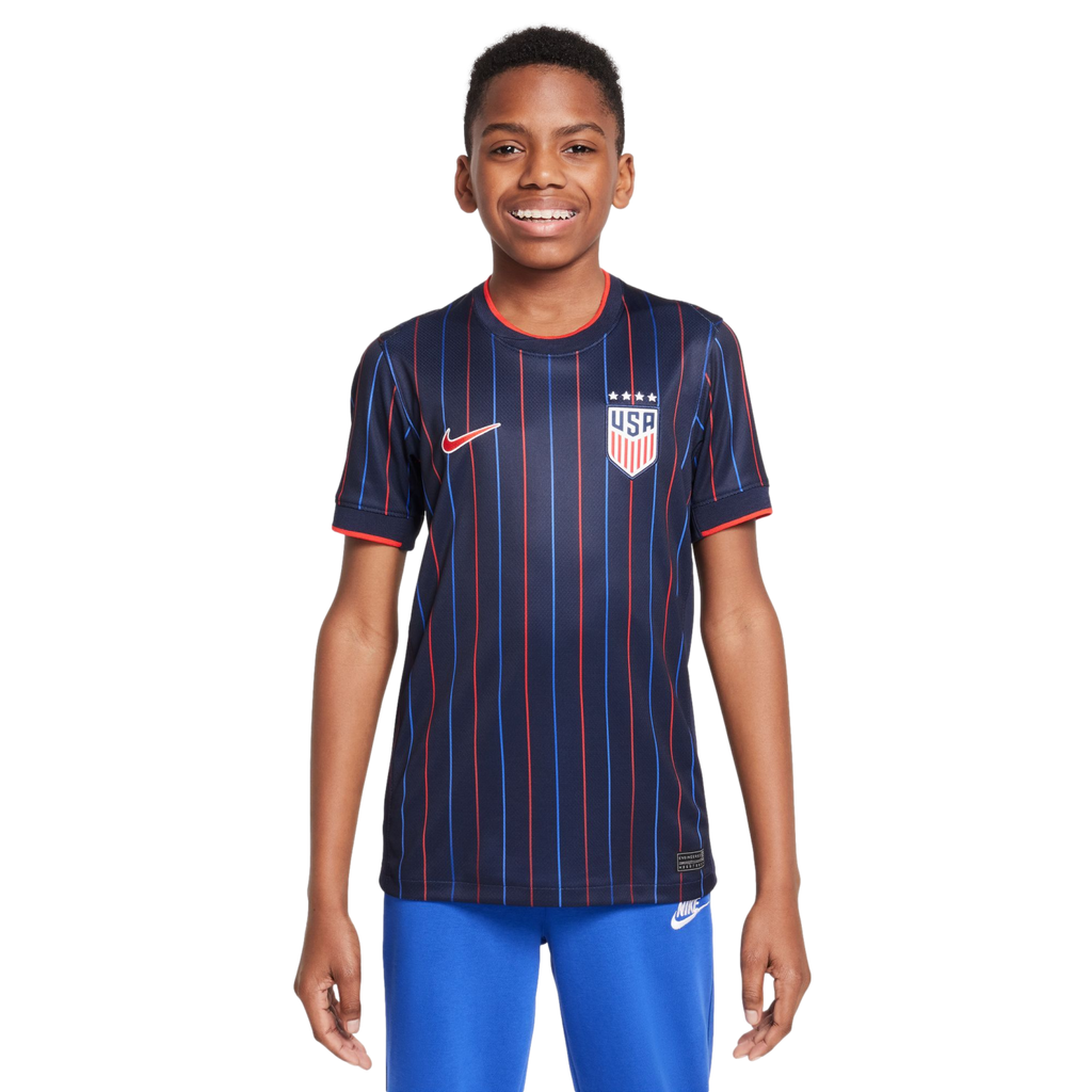 Since 1985, the USWNT has been the guiding light for the future of the game. Celebrate four stars and 40 years of progress with the USWNT Away kit. The stripe graphic pulsating stardust embodies the radiant heartbeat of the team as they continue to inspire future generations.