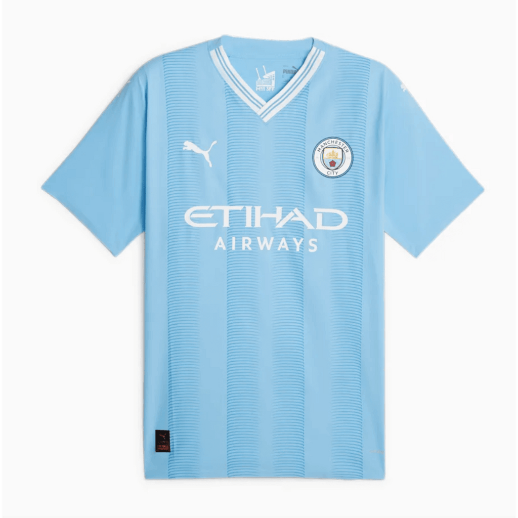 Welcome to Ashton New Road, where we put the City in Manchester. With the 2023/24 Home Kit, we celebrate the Etihad Stadium and all those who call it home. The graphics are drawn from the iconic features of the stadium and inspired by the jersey worn during the inaugural season at the new ground, with accents and details that mark the 20th anniversary of City at the Etihad.