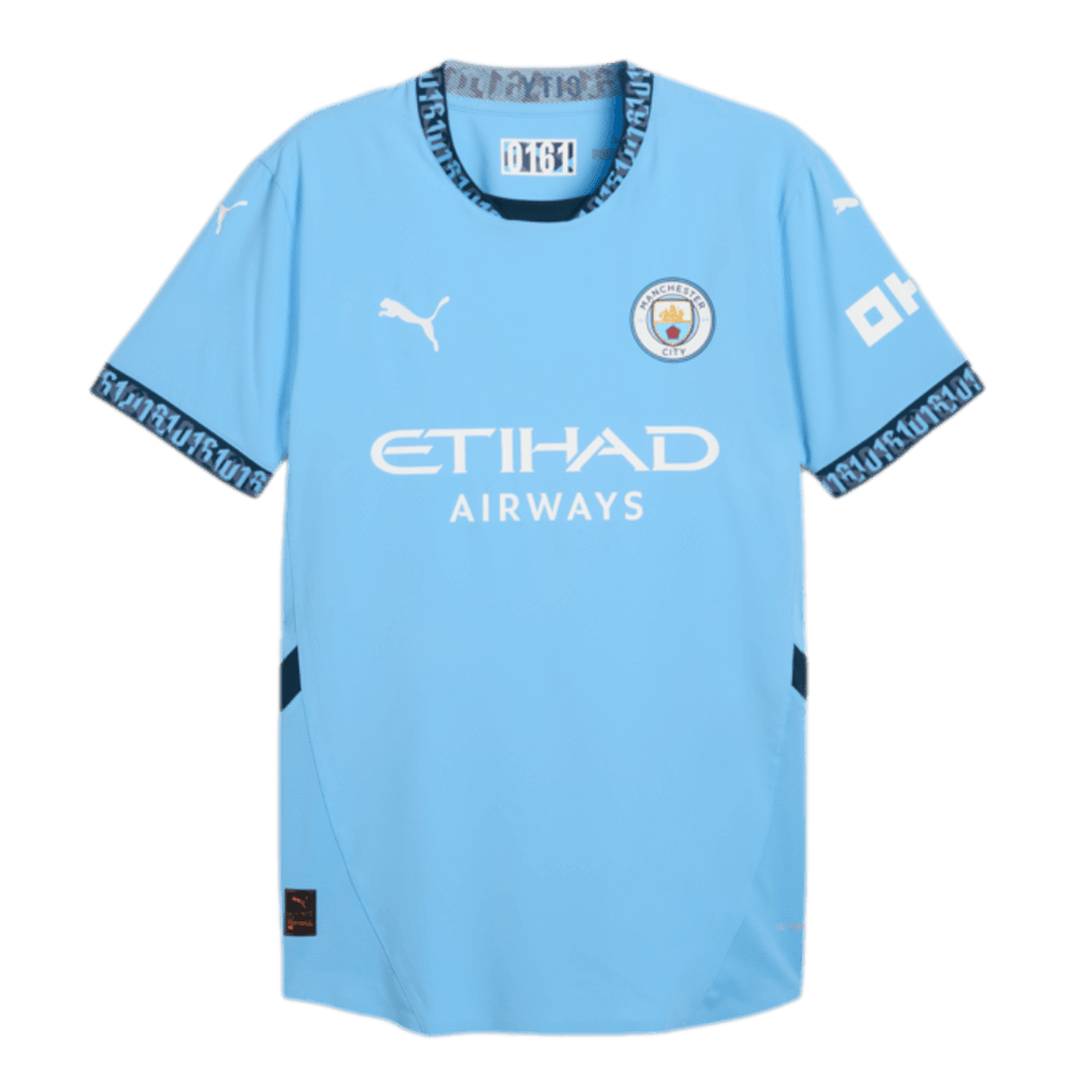 0161 is more than an area code. You'll see it written on lampposts, printed on t-shirts, and tattooed on people. It's an accent, a swagger, a sense of what being Mancunian is all about – even if you aren't Mancunian. This season, we thread 0161 through the trims of the 2024/25 Home Kit and invite the world to wear it. From East Manchester to Istanbul, Northern Quarter to Norway, Moss Side to the other side of the world. If it's Sky Blue, it's 0161. That's Manchester Calling.